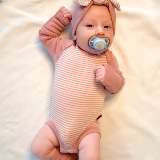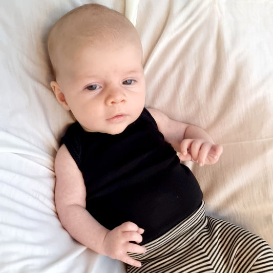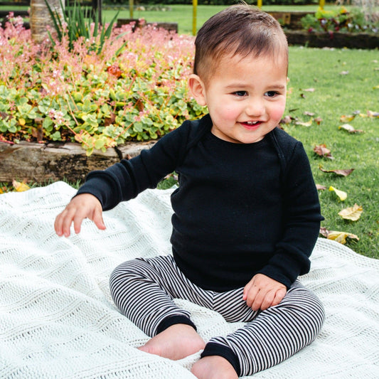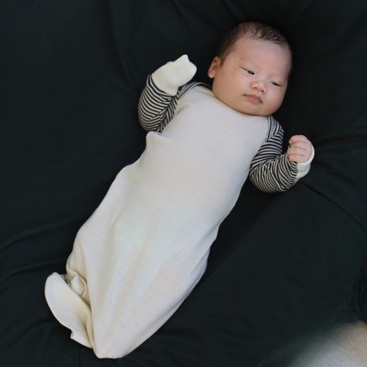 That’s why we make babywear from superfine New Zealand merino: soft, breathable, and machine washable. It's practical, gentle on delicate skin, and perfect for everyday snuggles.